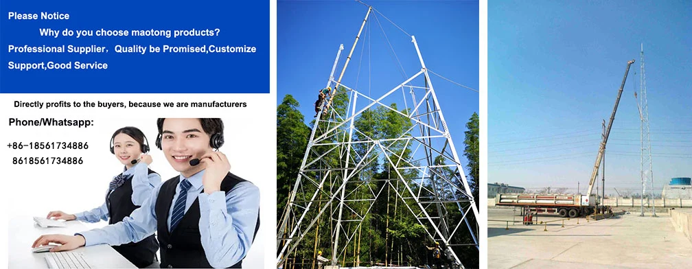 Mao Tong es uno de los principales fabricantes, proveedores y exportadores de torres de celosía de acero en ángulo de torres de comunicación de China. La torre de comunicación está compuesta por componentes de acero como cuerpo de torre, plataforma, pararrayos, escalera de ascenso y soporte de antena, y está tratada con galvanizado en caliente y anticorrosivo.