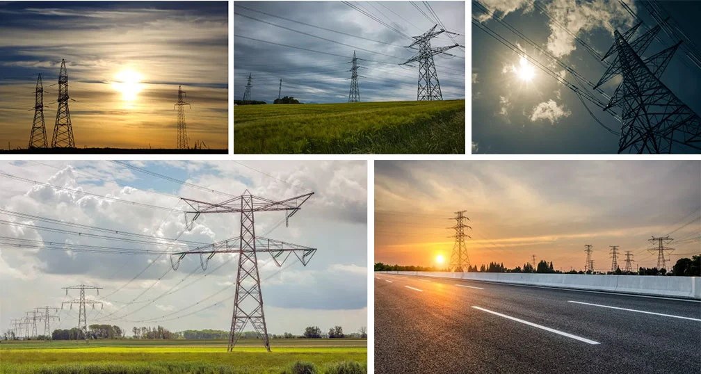 4kv, 4,8kv, 12kv, 13,2kv, 22kv, 23kv, 24kv, 24,9kv, 27,6kv, 33kv, 34,5kv, 35kv, 46kv, 66kv, 69kv, 110kv, 115kv, 132kv, 138kv, 150kv, 154kv, 161kv, 220kv, 230kv, 275kv, 287kv, 330kv, 345kv, 380kv, 400kv, 500kv, 735kv, 750kv, 765kv, 800kv, 1000kv, 1100kv, torres que incluyen torre angular, torre tubular; Torre SST y torre arriostrada; Torre de circuito simple, torre de circuito doble y torre de circuito múltiple; Torre de celosía o torre monoposte; Marco H, torre tipo M, torre tipo T, torre tipo Y; Y todo tipo de postes de servicios públicos, postes de transmisión y distribución, postes de conmutación; Estructuras de subestaciones, etc.
